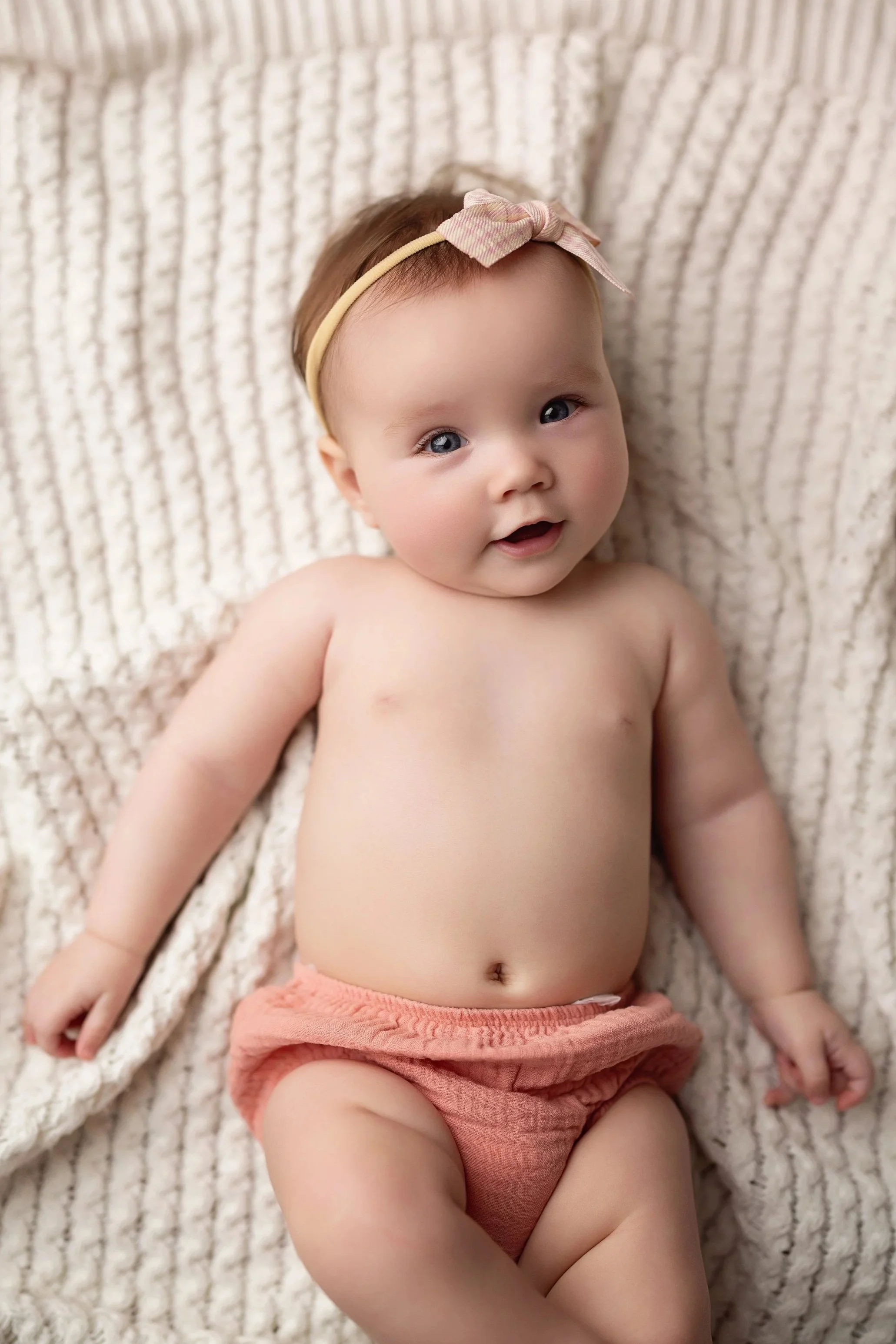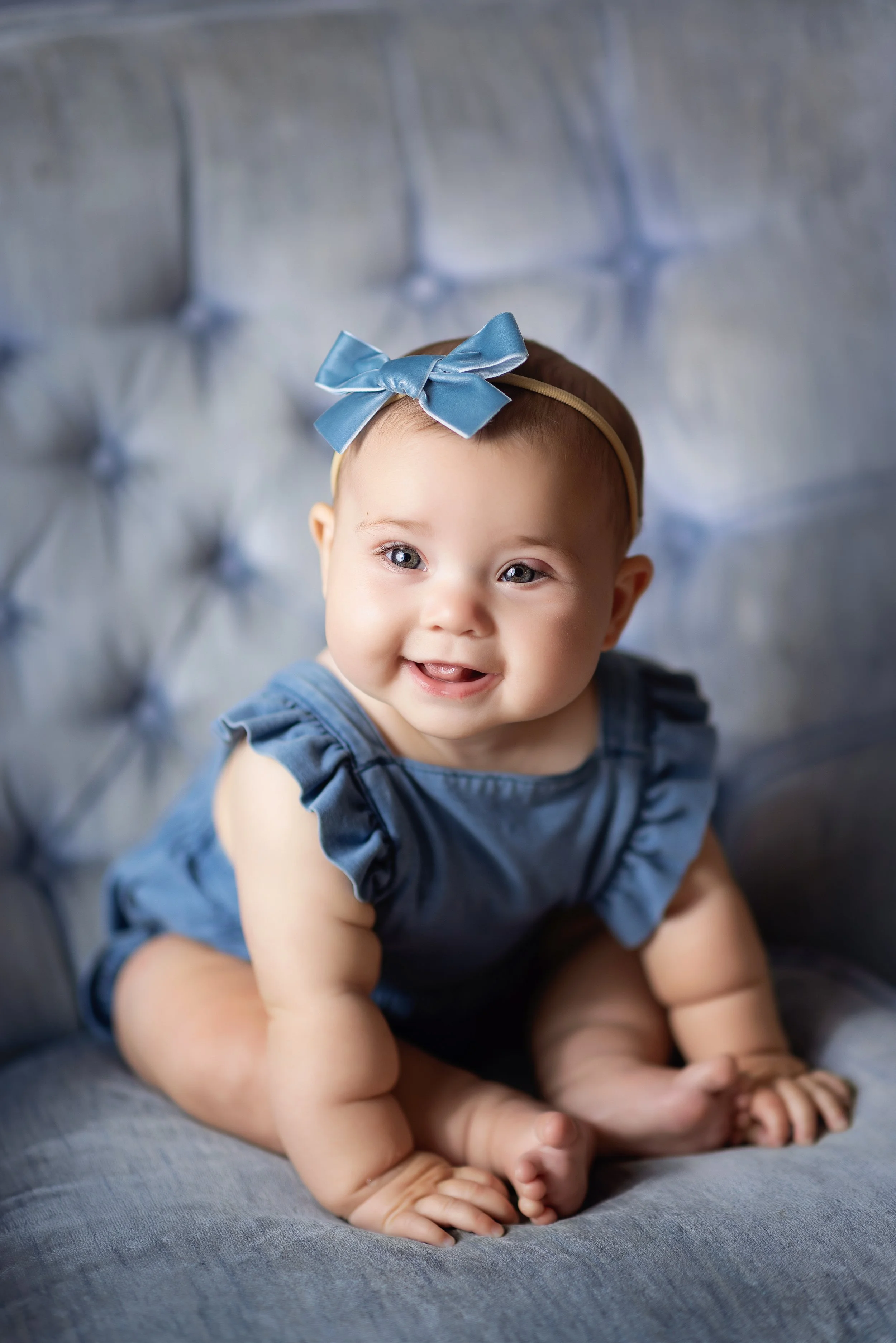 This is the stage of big eyes and bigger grins. Baby is sitting up, taking in the whole world, and has so much personality, we just have to capture it.
